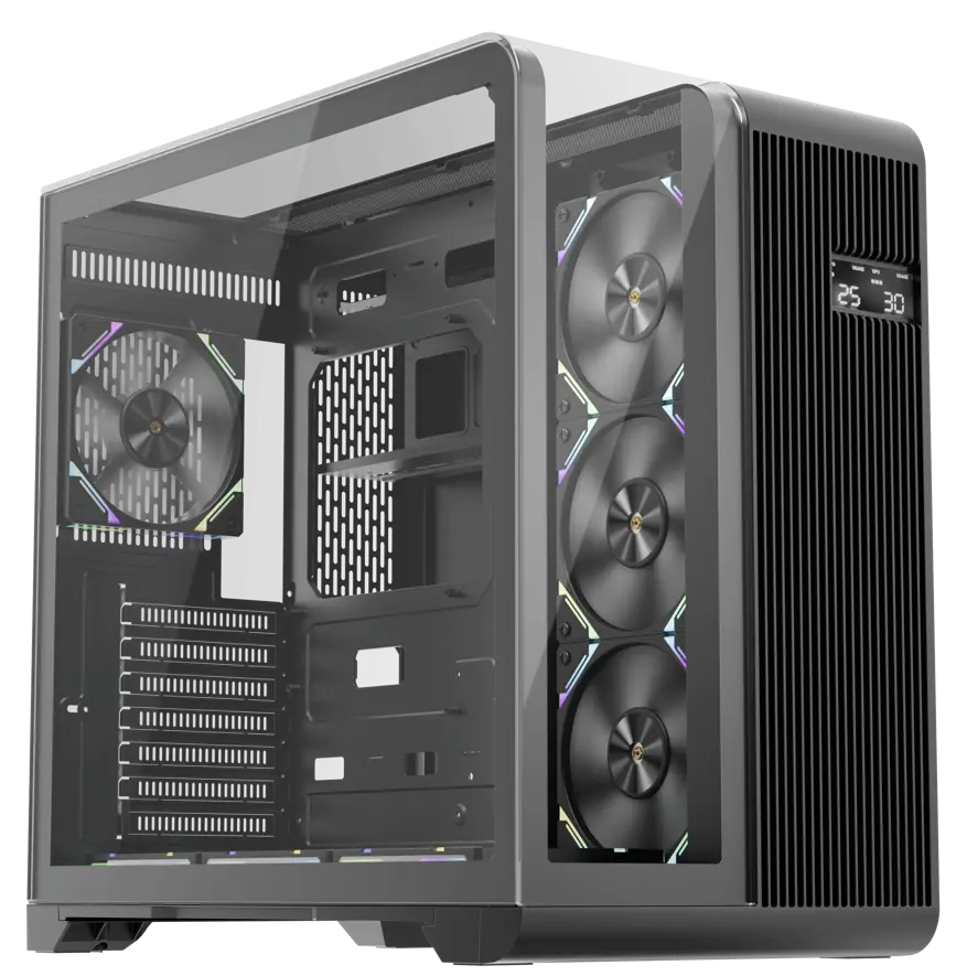 The RT7 features three tempered glass panels, offering a panoramic view of your build. Highlight your best-in-class hardware and vibrant RGB lighting from multiple angles, perfect for esports and gaming enthusiasts who love dazzling setups.